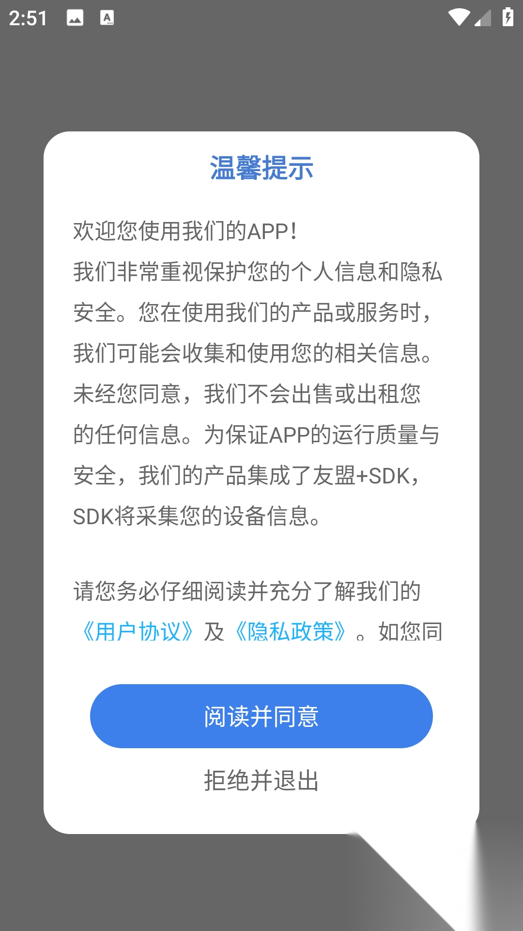 1、安装软件后打开,阅读并同意相关条款,随后进入软件主界面;
