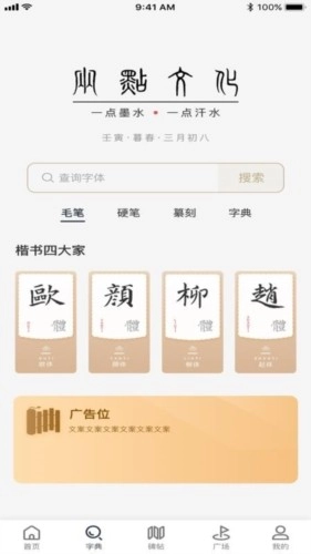 两点书法是一款为书法练习者量身打造的手机应用,海量练习资源,包含硬笔、毛笔等各类书法字体,可满足不同用户的练习需求。软件界面清爽、操作简单,无论您是刚入门的新手,还是有一定功底的书法爱好者,都能从中找到适配的练习内容与方法,欢迎前来体验!