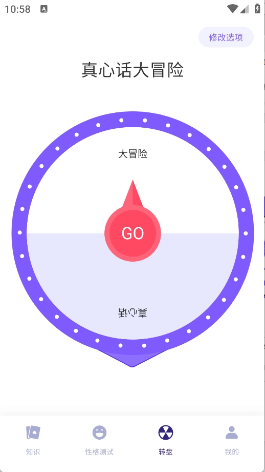 3、转盘页面设有大冒险与真心话选项,可随时查看各类不同选项资源。