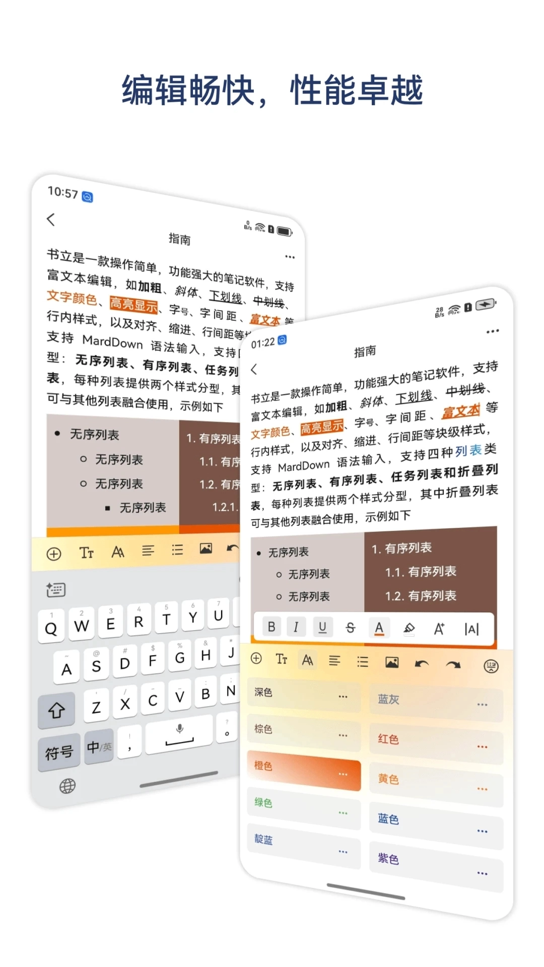 1、书立具备丰富的文本样式编辑功能,涵盖加粗、斜体、下划线、中划线、文字颜色、高亮显示、字体选择、字号调整、字间距设置等多种行内与块级样式选项。用户能够如同使用Word般便捷地对文本进行编辑操作,从而创建出独具个人风格的笔记内容。