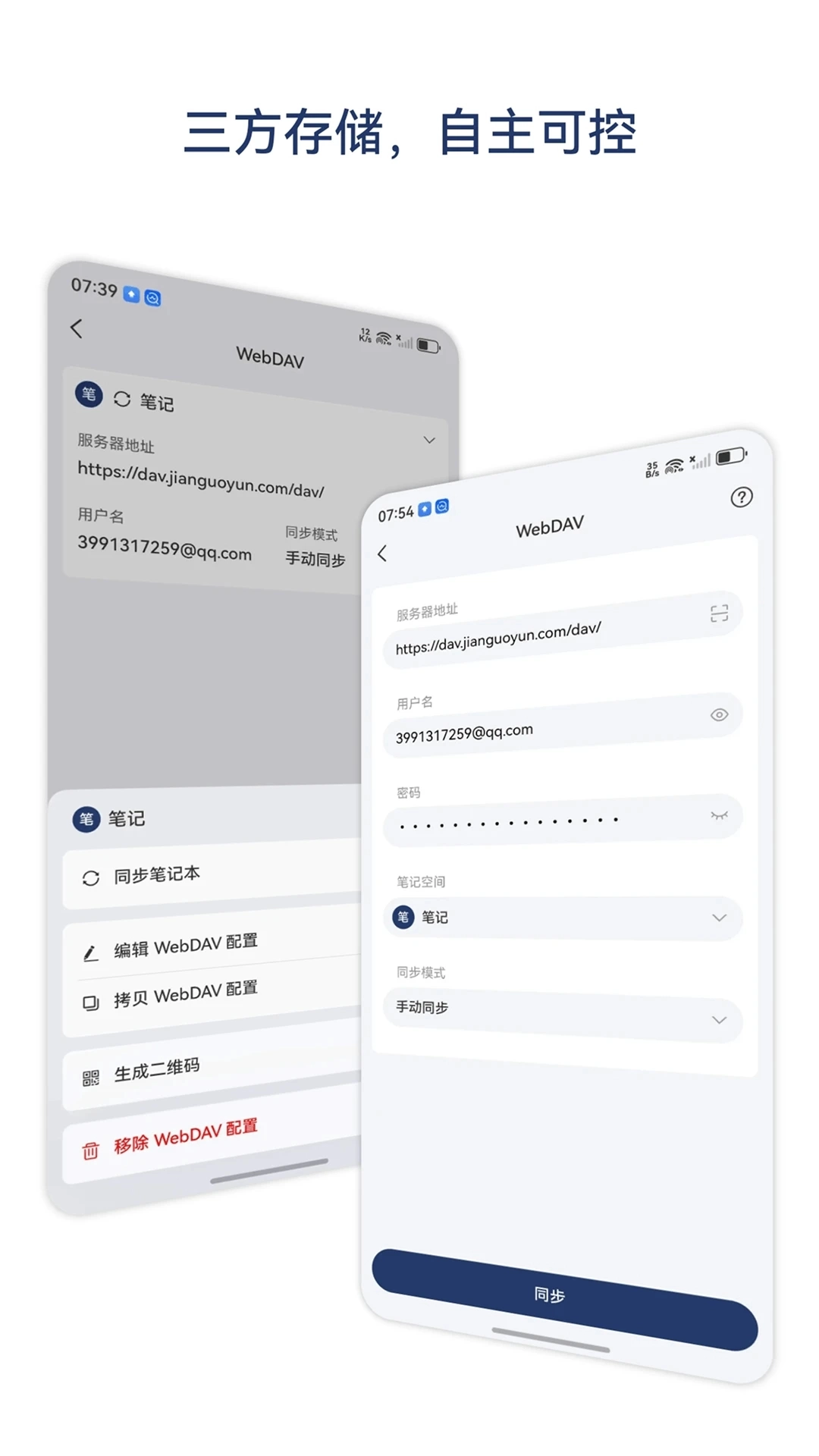 3、书立具备WebDAV同步功能,用户可将笔记备份至云端以保障数据安全。只需完成WebDAV配置,就能便捷达成云同步,且数据始终由用户自主掌控。