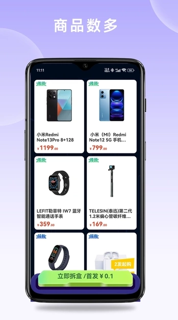 叮咚盒是一款很有趣的电商购物软件,提供的商品玩法比较多,用户可以快速在线挑选下单,也可以快速在线抢购,热卖商品将会实时更新,用户低价就可以购买到手,并且也可以和他人一起拼团,实现了购物自由。