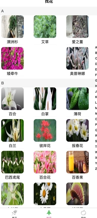 1、用户需要进入首页,在最下方找到“找花”。