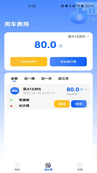 3、拥有记录与多维统计的功能,能够按周、月等时间维度对费用进行统计,直观清晰地呈现支出状况,助力车主轻松了解通行成本。