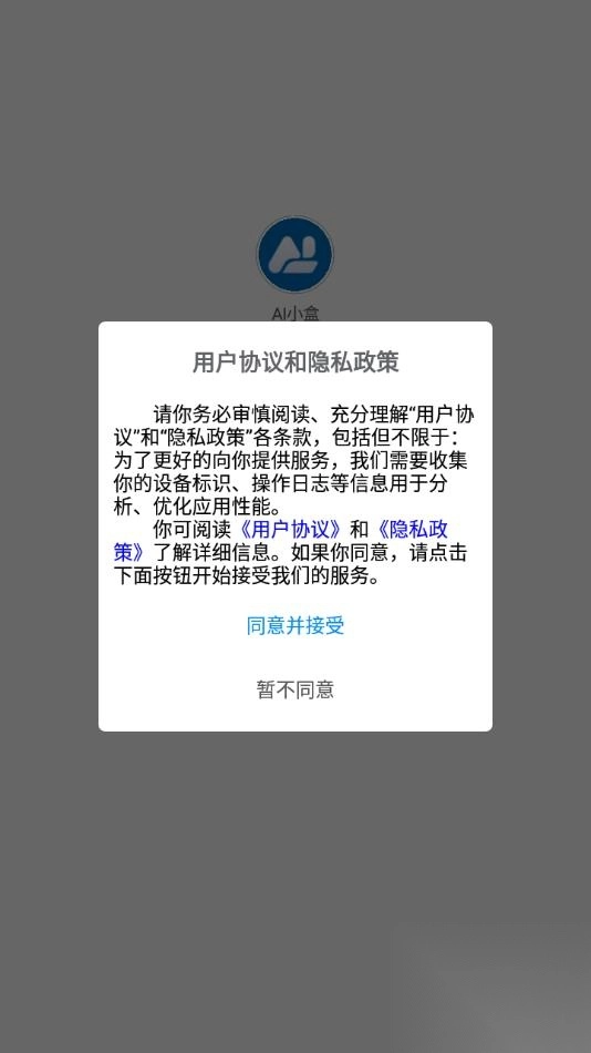 1、安装软件后打开,点击同意用户协议和隐私政策。