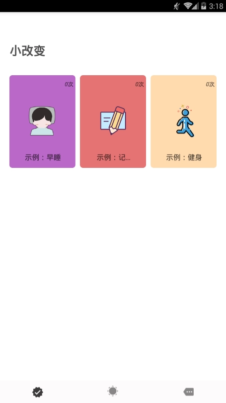 小改变是一款专注于培养工作习惯的软件,用户不仅能自定义习惯设置和日历规划,还能参与早睡、早起喝水等丰富的打卡活动。软件提供多种提醒方式供选择,更具备精准完善的习惯数据统计功能,每日只需完成一次任务即可打卡记录。感兴趣的朋友不妨来体验一下!