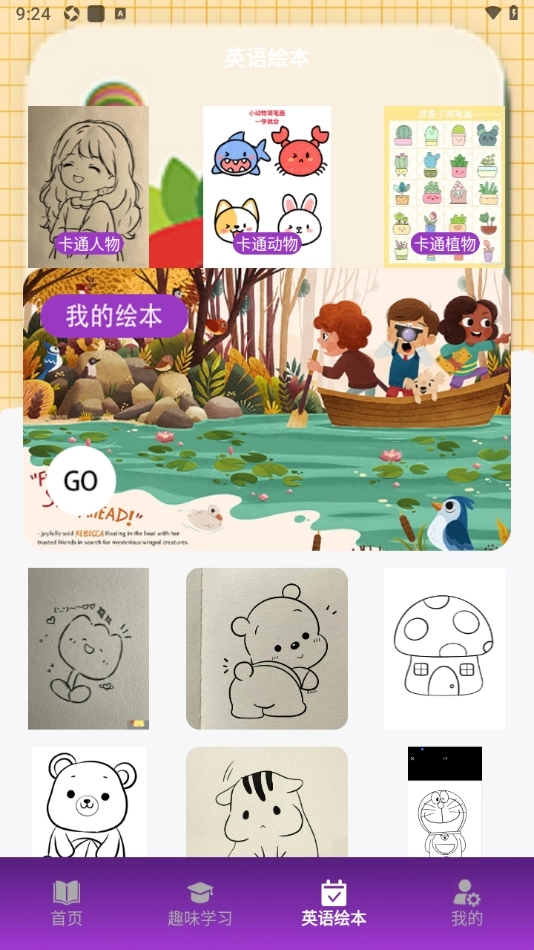 3、绘本板块的内容是给图片上色,当学习感到疲惫时,它能帮助放松身心,同时也是提升注意力的不错选择!
