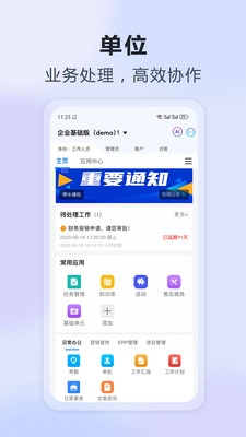 3、根据用户权限使用协作应用,管理员通过后台配置流程与权限。