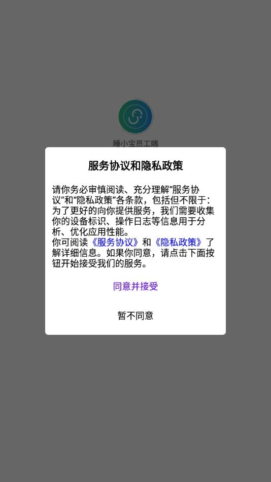 1、安装软件后打开,点击同意服务协议和隐私政策。