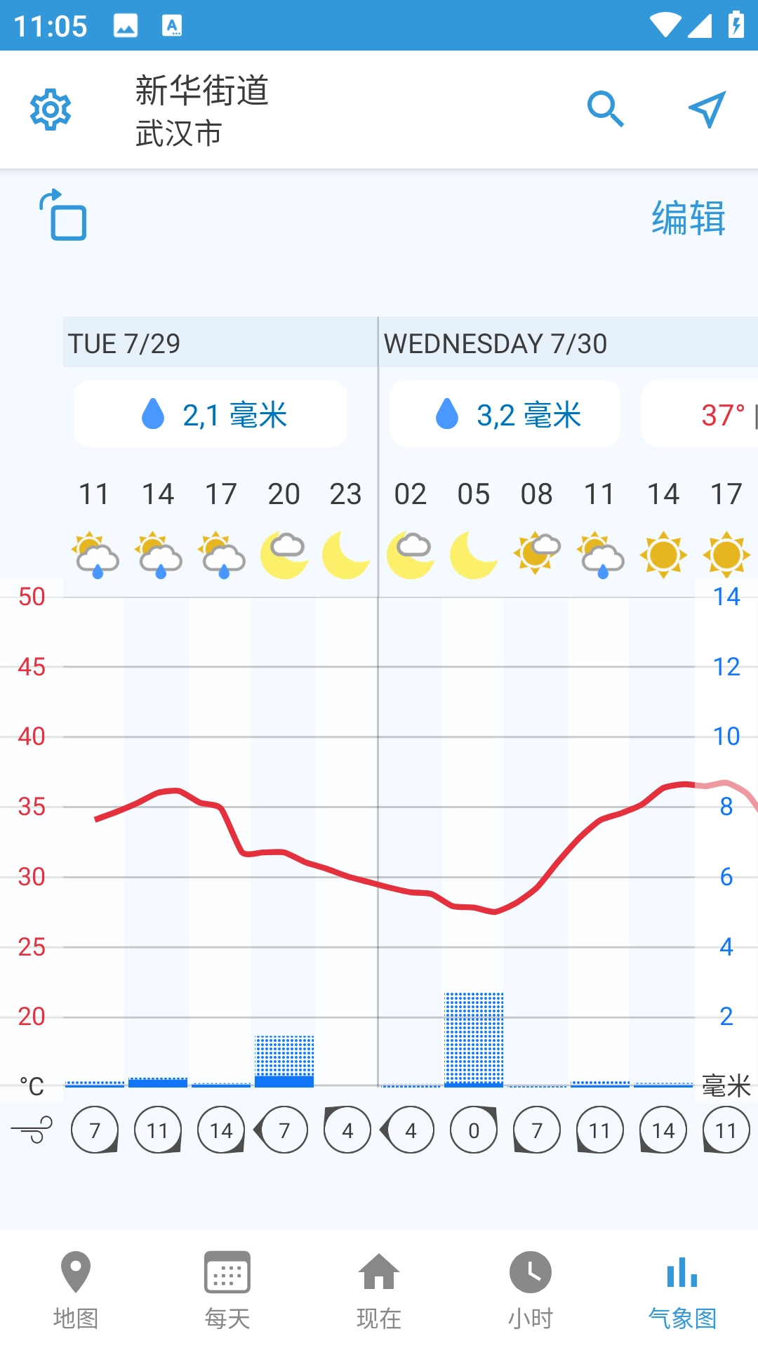 2、提供逐时预报及趋势图表,展示未来24小时内详尽的气象变化曲线,以便直观掌握气温与降水的趋势走向。