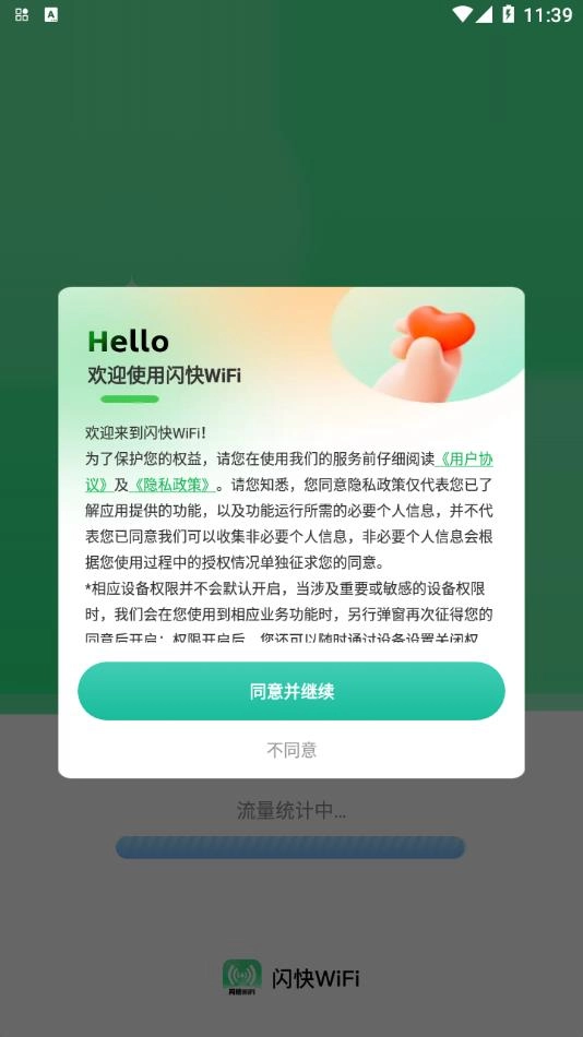 软件安装完成后,直接点击打开进入,然后点击同意用户隐私协议。