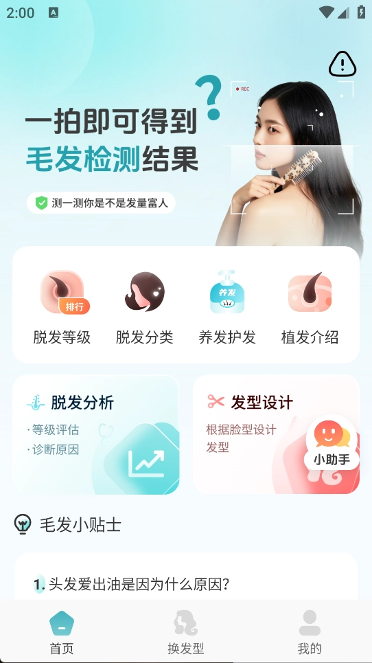 1. 借助智能检测技术,助力用户科学认知自身脱发状况,并提供个性化养发指导,协助用户更有效地处理脱发困扰。