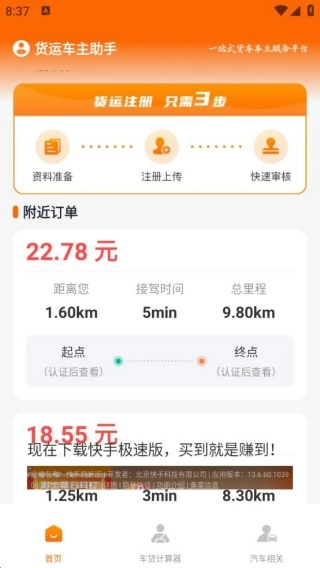 3、平台提供货运注册的详细三步骤指南,包括资料准备、注册上传与快速审核,完成这些步骤即可进入平台接单。