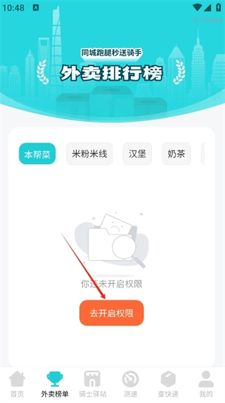 3、点击进入外卖排行榜,此操作同样需要大家开启授权。