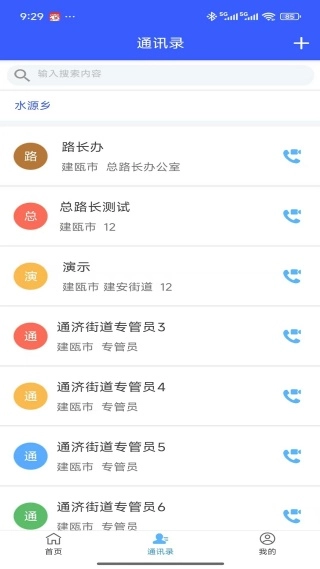 3、通讯录页面能查看所有在职员工的联系方式,支持一键拨号联系;另外,为便于快速查找,还可通过搜索框直接定位目标联系人。