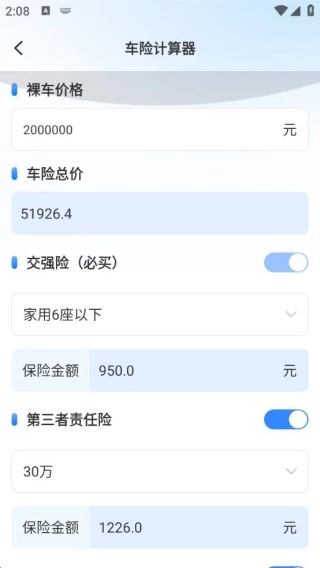 1、借助车险计算器,录入裸车价格等相关信息后,系统会自动核算车险总价、交强险等各项费用,让用户能够迅速了解保费的详细构成。