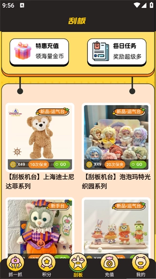 4. 点击页面下方的“刮板”选项,就能看到特惠充值和每日任务这两项功能了。