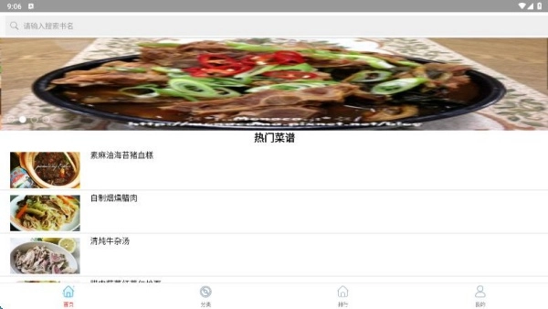 1、首页会及时更新热门菜谱内容,同时提供搜索功能供用户使用。
