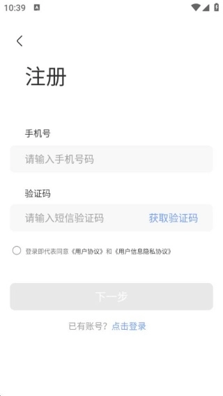 2、进入注册界面后,输入手机号与验证码,即可进入下一步操作。