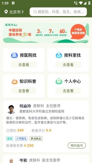 1、支持通过医院、科室、医生名称或疾病关键词进行搜索,能快速锁定目标医生并完成挂号,整个流程简洁高效。