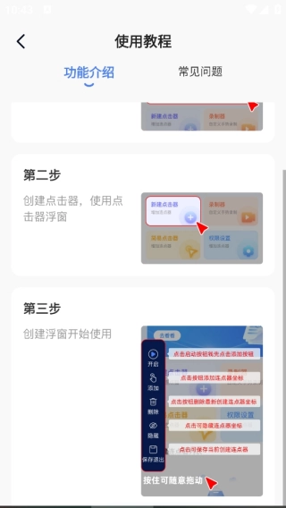 1、无需复杂设置,只需调整点击位置和频率即可开始运行,支持悬浮窗控制,随时开启/关闭;