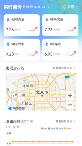 用户能够随时知晓不同型号汽油与柴油的实时价格以及涨跌情况,从而及时把握油价的变动趋势。