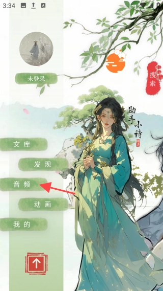 3、进入【音频】页面后,您可以通过导航栏浏览内容,也能查看热门诗集,还可以选择“随便听听”来随机播放音频。