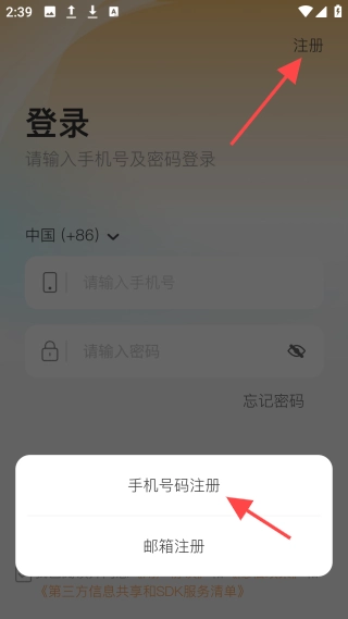 2、点击页面右上角的【注册】按钮,可选择通过手机号码或者邮箱两种方式完成注册操作。