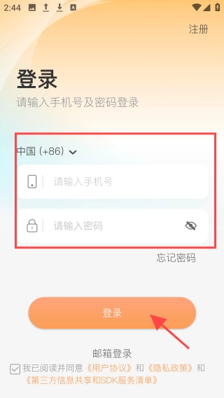 4、打开【登录】界面,填写相关信息后点击【登录】按钮就能完成登录操作。
