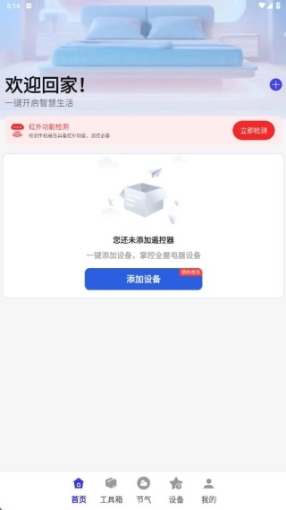 1、安装后在首页查看设备添加功能,点击进入。
