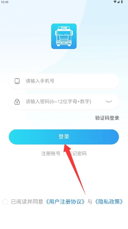 4、回到登录界面,输入手机号与登录密码,勾选同意相关协议后,点击登录按钮即可进入。