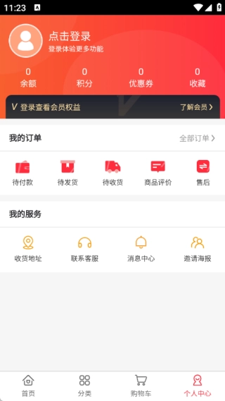 4、在个人中心里面可以知晓我的订单和我的服务,还有我的余额、积分等信息。
