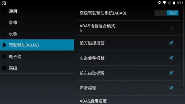 4、驾驶辅助界面功能:可对行车过程中遇紧急情况时的报警功能进行相关设置。