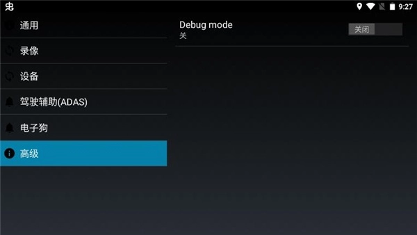 6、高级界面相关设置:支持对debug mode功能的开启或关闭状态进行配置。