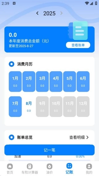 3、汽车记账功能具备清晰明细,可自动分类记录加油、保养、洗车、停车、美容改装等各类用车开支,助力车主精准把控用车成本。