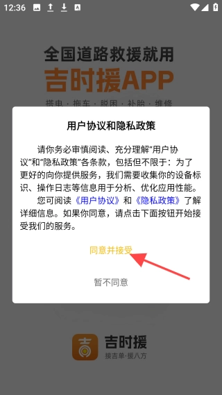 安装完成后,请仔细阅读“用户协议和隐私政策”,随后点击【同意并接受】按钮。