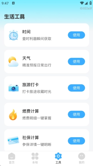 4、该工具涵盖了时间查询、天气查看、旅游打卡记录、燃费计算以及社保核算等多种服务功能。