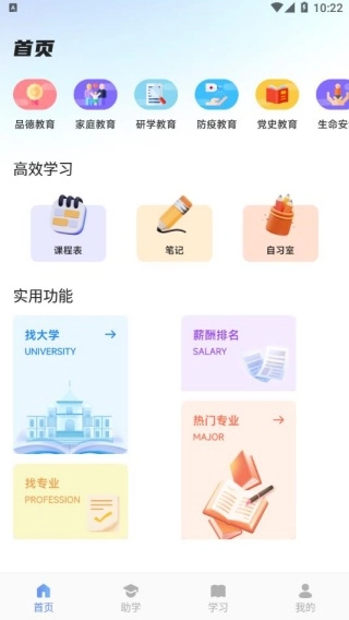 3、把课程学习、考试检测、大学和专业查询、薪资排名参考等功能整合在一起,使用起来流畅便捷。