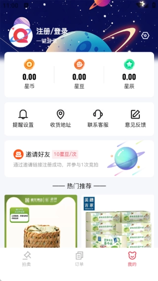 在“我的”页面中,你可以了解星币、星豆、星辰的相关信息,也能在此处填写收货地址,还可以设置提醒服务。