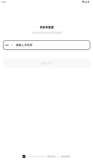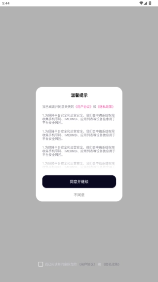 1、安装后打开软件,提示同意与否,点击同意进入注册界面;