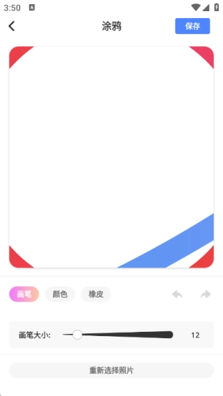 2、在图片涂鸦页面中选择相册中的图片,然后选择画笔、颜色以及橡皮等不同的功能;