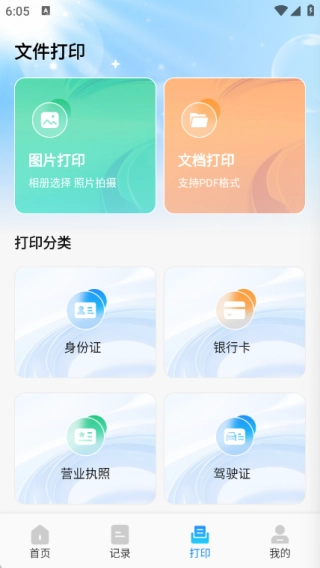 4、在打印页面中提供图片打卡、文档打卡两大功能,同时还有多种打印分类。