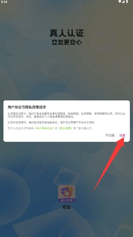 1、初次使用时,请仔细阅读用户协议和隐私政策,确认无误后点击同意按钮,即可进入登录界面。
