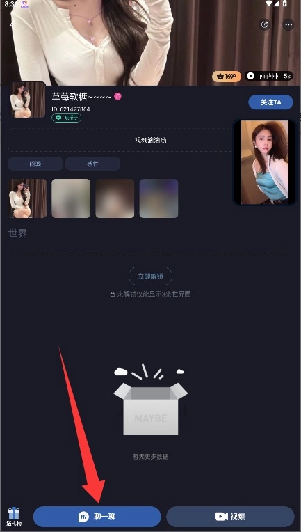 4、进入用户资料页面查看详细信息,点击“聊一聊”功能即可开启私信对话功能。