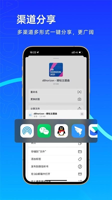 1、「相册存储」用手机相册存放音频,在微信、QQ、抖音一键分享;