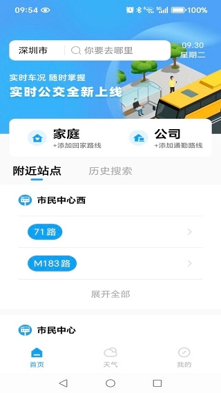 1、安装进入,首页展示了附近站点的公交线路,可以放心参考。