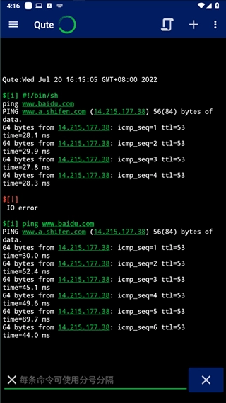 Qute命令行shell是一款能在安卓设备上运行shell命令的终端模拟器。通过它,用户可以便捷地使用安卓底层的Linux命令行功能,像ping、netstat、cd、mkdir这类常用的PC端命令都能在手机上执行,还支持模拟运行Linux系统的相关命令。