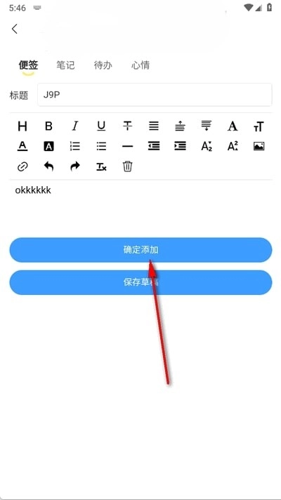 2、选择记事本类型,填写标题与内容后,点击确定完成添加;