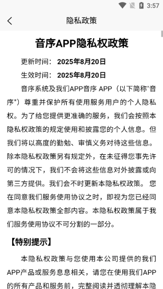 3、平台对用户隐私政策、使用注意事项等内容的介绍十分详尽,充分保障用户的知情权。