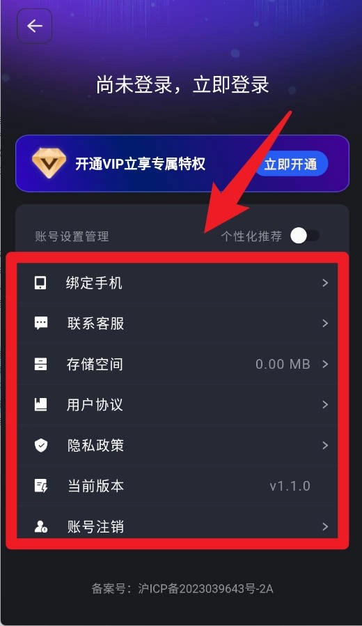 3、进入设置界面,可进行绑定手机、联系客服、查看存储空间及隐私政策等操作,同时还能随时进行账号注销或查看版本信息。